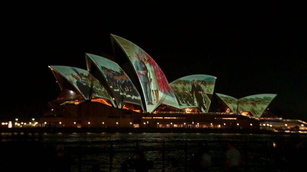 The sails of the Sydney Opera House were also planned to be lit up with a photo montage of the monarchs’ previous visits as they flew into Australia.