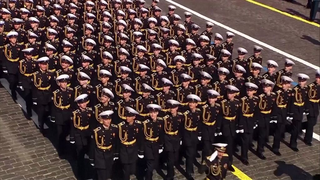 - The parade marks the anniversary of the Nazi surrender in World War II