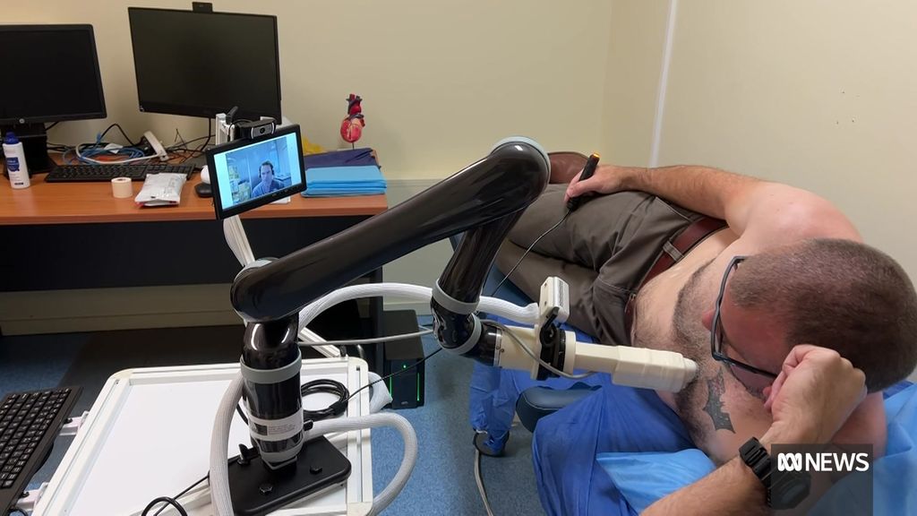 브리즈번의 의료 종사자들이 운영하는 로봇이 퀸즈랜드 오지에서 1,000km 이상 떨어진 환자의 심장을 스캔하고 있습니다.